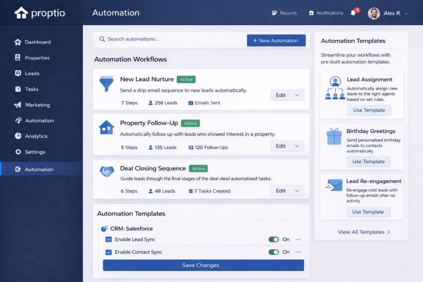 Automatically send emails, assign leads to agents, schedule reminders, and trigger workflows that keep deals moving forward without manual work.
